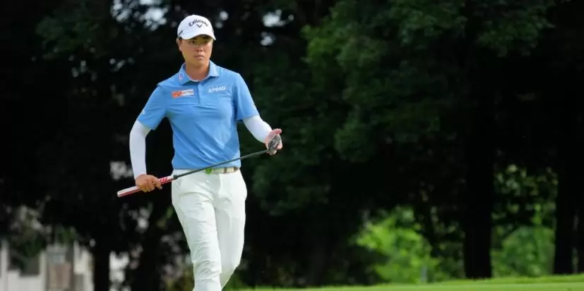初日の15番パー3で、笹生優花はティショットを大きく左に曲げ、崖の方へ落ちてしまいました。