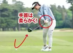 もう一つ、遠心力を活用しやすくするポイントがあります。それは手首を硬くしないことです。クラブヘッドの自由度を奪わないように、手首を固定しないで柔軟にしておきましょう。手首を柔らかくしておくのは、グリップをゆるゆるに握るということではありませんので、そこは注意してください。