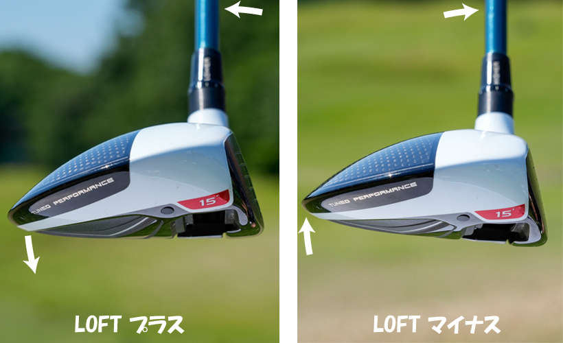 では、フェアウェイウッドに“カチャカチャ”は不要なのかと言うと、ロフトの調整ではなくフェース向きの調整に利用すれば有効な機能になります。具体的には、シャフトが、フェース側またはバックフェース側から斜めに入った状態から、ヘッドを中心にグリップエンドが大きな円を描くように回してシャフトをスクエアに戻せば、ロフトではなくフェース向きが変化します。この使用方法は、フェアウェイウッドだけではなくドライバーでも使えます。