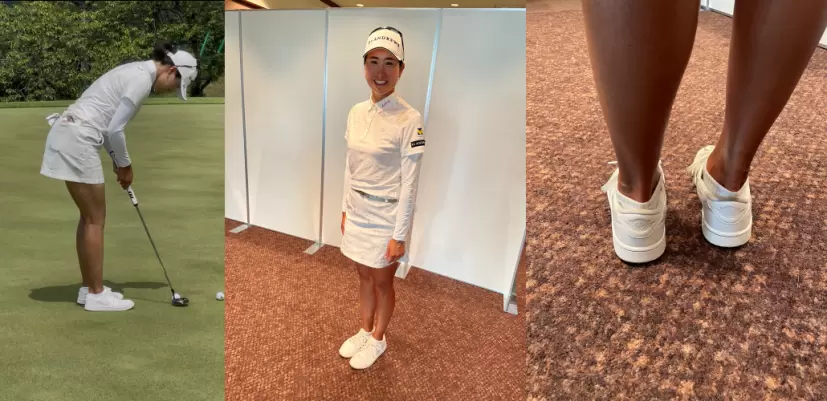 木戸に聞くと「ソールが薄いのがいいんです。スニーカータイプは比較的ソールが厚めが多いですけど、『ジョーダン1』はそれほどでもないので、傾斜を感じることができます。ショットの際もグリーンでも。ゴルフはいかに傾斜を感じ取れるかが大事ですから」と説明してくれました。