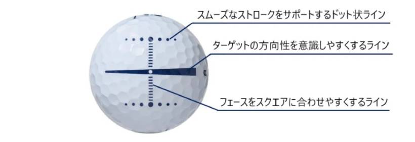 また、距離やラインによって使い分け(線で狙う・幅で狙う)が可能で、各シーンにおいてマークだけに集中しやすいマルチデザインとしており、ツアーで活躍する一部の契約プロも、同アライメントマークが入ったボールを使用している。