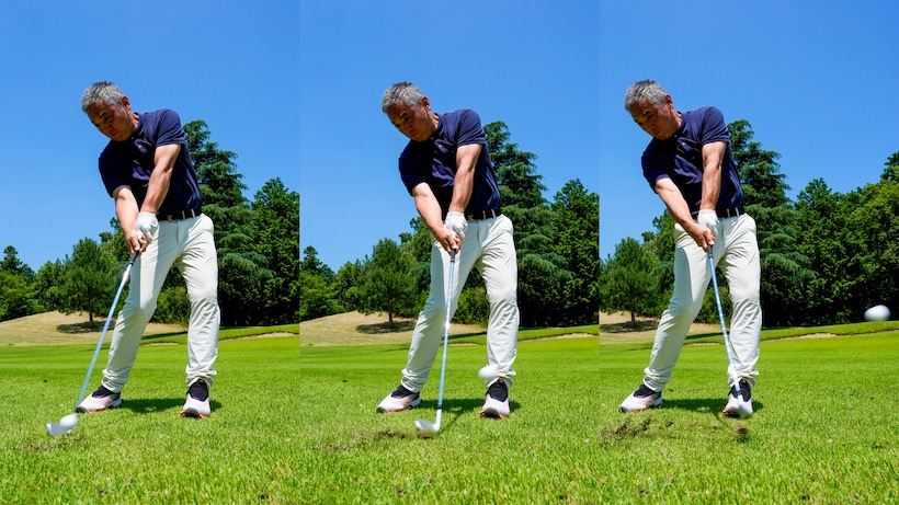 「i240は薄めでもトゥでも、少々芯を外したくらいでは飛距離も高さも変わらないですね。佐久間選手が言うように、シャープでコンパクトなヘッドながら、ミスが大きなミスになりにくい寛容性を備えています。