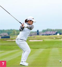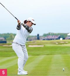 三角形をキープすることによってスイングアークも大きくなります。西郷選手は身長159センチと決して大柄なタイプではありませんが、平均飛距離は259ヤード。それだけ飛ばせるのは腕を伸ばして三角形をキープすることによってスイング軌道が大きくなるからです。