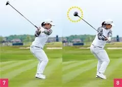 バックスイングからトップにかけて手首の角度がほとんど変わっていない。トップではフェースがスクエアになっている。