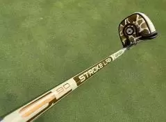 そしてこのパターにはスチールでできている「STROKE LAB 90シャフト」が装着されています。このシャフトは重量配分が計算されており、とにかくストロークがスムーズになるんです。始動も動かしやすいし、インパクトからフィニッシュまで気持ち良く動かせます。ちなみにこのシャフトのプリントもしっかりとキリンカラーになっています。