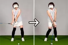 アイアンでハンドファーストにインパクトしようとしてもできない人の多くは、インパクトの瞬間だけを切り取ってスイングに当て嵌めようとしています。単純に手元を飛球線方向に出してインパクトしているわけです。これだと気分的にはハンドファーストでも球がつかまりません。手元だけが前に出てフェースが開く一方だからです。シャンクが出て止まらなくなる人も結構いるので、手を単純にスライドさせる似非ハンドファーストは百害あって一利なしです。