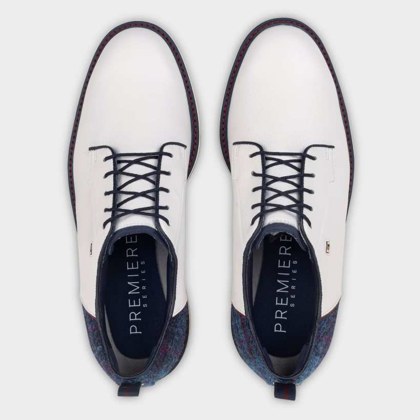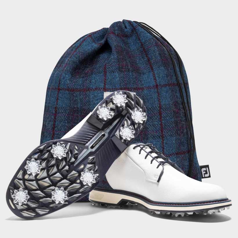 今回で5年目となるFootJoyとHarris Tweed ®とのコラボレーションは、第153回全英オープンが開催されるロイヤルポートラッシュゴルフクラブの伝統と独自性にふさわしい大胆なパターンを選定。