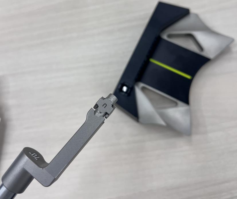 そしてパターもライナップに加わり、センターシャフトの前作「CSPパター」はライ角、ロフト角が自分で調整できると話題となった。シンプルな構造であるセンターシャフトだからできる調整機能で「なるほど!」と思っていたが、それがクランクネックでもできるというのだから、どうやって可変させるのか、不思議でならなかった。