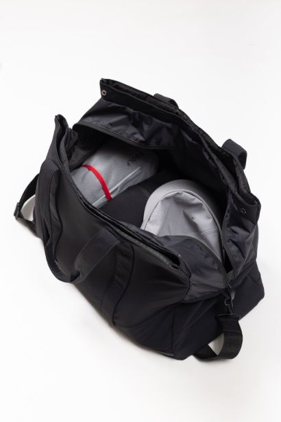 荷物の量に合わせて、上部のスナップボタンを使用してコンパクトな形状にシフトすることも可能。裏地にははっ水機能が施されており、利便性の高いハイスペック仕様でありながらもミニマルなデザインに仕上げられた& GOLFらしい洗練されたアイテム。
