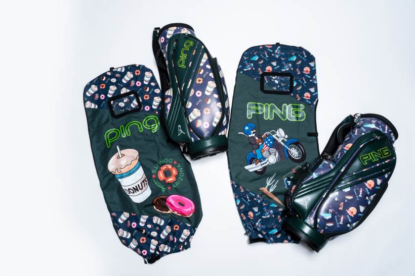 今回登場するのは、ライダー姿のMr.PINGを大胆にあしらった「バイクモチーフ柄」と、アリゾナ州セドナの人気ドーナッツショップから着想を得た「ドーナッツ柄」の2種類。“ENJOYGOLF”をテーマに、男女でおそろいも楽しめる遊び心あふれるラインナップで、これまでにないPINGの魅力が満載。