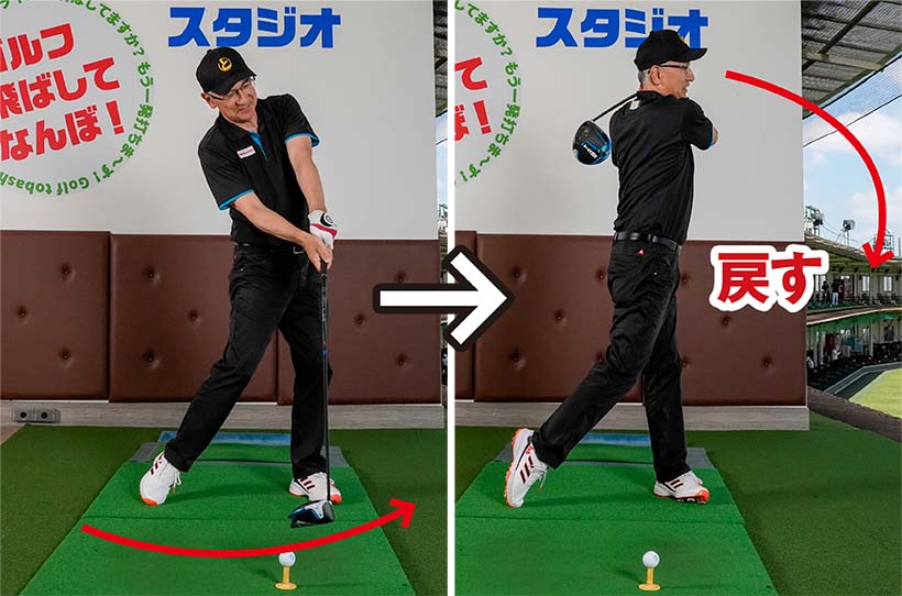 連続素振りを繰り返して下半身主導の動きでクラブを上げる感覚をつかもう