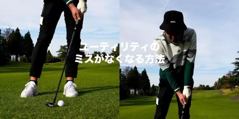 中にはダウンスイングでカカトが浮く人もいます。特に右カカトが浮く人が多いですが、これはドライバーで飛ばそうとして右足を蹴りながら打つことが原因かもしれません。ティアップしたボールを打つドライバーでは、カカトを上げながら打っても多少トップする程度ですみますが、地面にあるボールを打つUTではこれが仇になります。こうなっているかも、と思ったらベタ足で打ってみましょう。ジャンプしながら打っているプロもいますが、よく見るとカカトは上がっても腰は浮いていません。