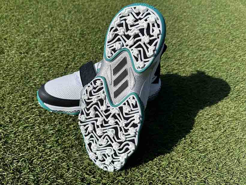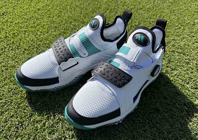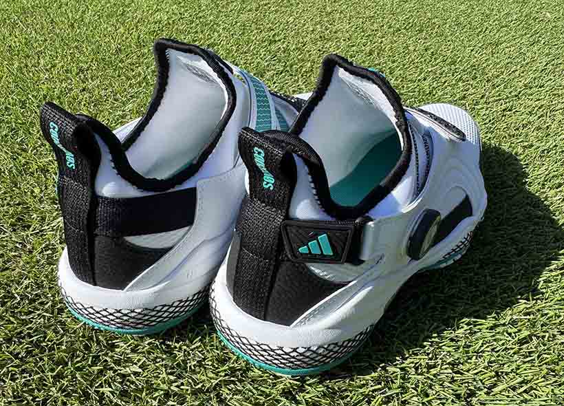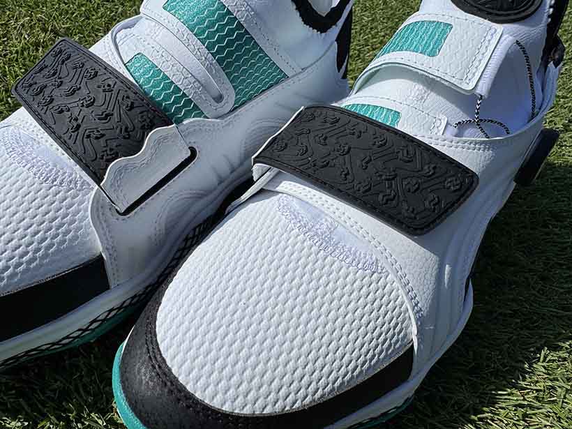 防水性と安定性の高いテキスタイルアッパーを採用しつつ、中足部を直に包み込みながら足全体をホールドする直足BOAラップを採用。その上で非常にソフトな履き心地でありながら高い安定感のあるテキスタイルをアッパーに採用し、シューズの縦横360°をホールドする面ファスナーを採用したダブルクロージャ―構造になっています。これにより最も膨張とブレが発生する前足部をしっかりと締め上げることで、よりパワフルなスイングを可能にしています。