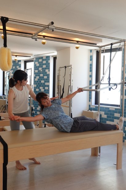 ピラティスは、体幹やインナーマッスルに働きかける全身運動。関節に負担をかけず、筋肉を均一に、そしてしなやかに鍛えることができる。稲垣プロも「全身運動だった。普段意識しない部分にも効いて、微調整がとても大事だと感じた」と語る。