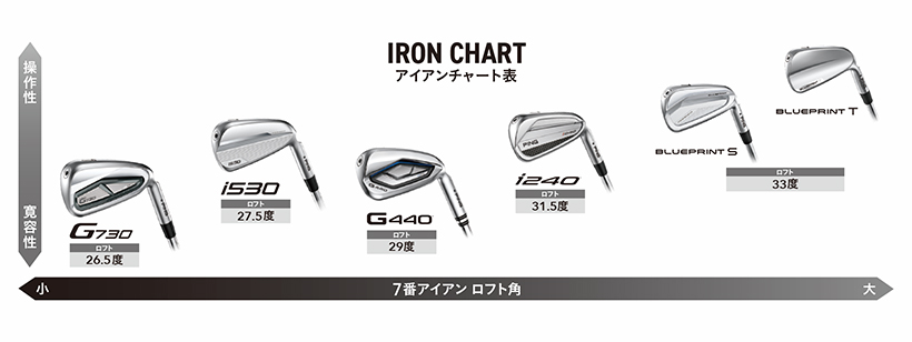もう少しボールを曲げたりする操作性が欲しいという人には同じPINGでも「Blueprint Sアイアン」を使えばいいと思います。打感の面でも「Blueprint Sアイアン」は軟鉄鍛造なので少し違った柔らかい打感を味わえます。前作の「i230アイアン」の時は「Blueprint Sアイアン」とロフト設定が同じだったので、少し性格がかぶるところがあったのですが、今作では「i240アイアン」のロフトが少し立ったおかげでしっかりと差別化がされ、選びやすくなったと思います。PINGのアイアンの中でしっかりと飛距離の階段ができたという感じですね。