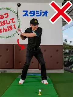 打ち急いでしまうクセのある人は、基本的に手打ちのスイングになっています。飛ばしたいという欲が働いたときや、OBがあるホールなどプレッシャーを感じたときは手上げとなり、バックスイングの捻転が不足しやすいのです。