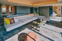 本棟の最上階に広がるのは、富士山が一望できる「ペントハウス」。最大8名が宿泊可能で、もちろんサウナ付き。入った瞬間から、「うわ〜!」「すご〜い!」と皆が声を出すほど豪華な空間。