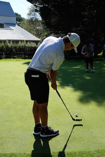 そう答えながら、1.5mほど先のカップにボールを転がすのだが、思った通りにラインに乗せるのができない様子。ボールはカップ右を通り過ぎて行った。