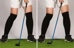 素振りもアイアンに寄せましょう。アマチュアの方はターフを取るのを遠慮して、ヘッドを浮かせたまま空を切る素振りから本番に臨む人が多いですが、これは失敗のもと。UTを打つ前にはクラブが地面のどこに接しているかを気にしてください。必ずしもボールの先の地面を掘らなくもいいですが、少なくとも芝を押し倒していないといけません。空振りはダメということを意識して素振りをし、それと同じ感じで打てればちゃんとあたって距離も出るようになります。