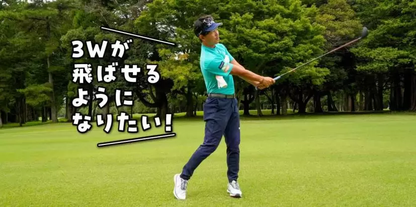 シャフトが長い3番ウッドはスイング中にワキが開きやすい点に注意