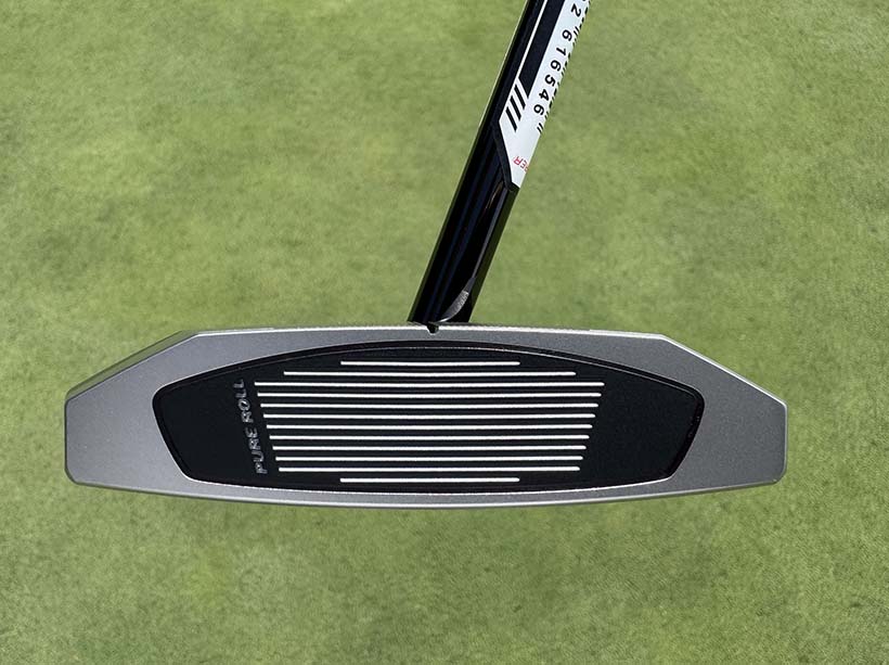フェース面にはSurlyn(サーリン)とアルミニウムの複合素材からなる「Pure Roll(ピュアロール)」インサートを採用。45度の角度で下向きに入った溝により、効率的に順回転(トップスピン)を生み出しスムーズな転がりを実現しています。