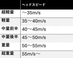 参考までに重量帯とヘッドスピードの関係も添付しておきましょう。