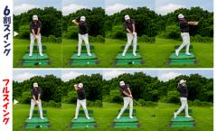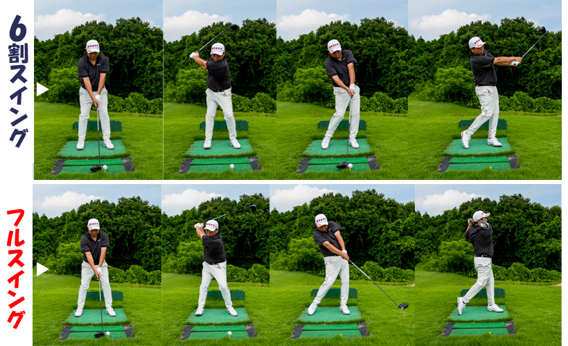 高橋:その感覚も問題なんです。6割スイングでも飛距離はフルスイングの9割近く飛びます。ドライバーの平均飛距離が230ヤードなら、6割スイングでも200ヤードくらいは飛びます。