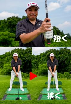 高橋:クラブを短く握って、6割スイングで安全運転! コレです。