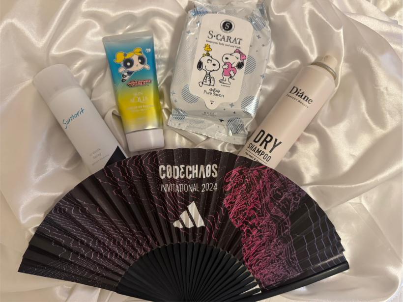 夏に欠かせないのは、汗拭きシート、ドライシャンプー、そして意外と扇子。ハンディファンだと音が目立ってしまうこともあるので、結局扇子で仰ぐのが一番。日焼け止めは年中必須で、塗るタイプとスプレータイプの二刀流。