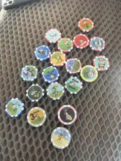 Abemaで放送されたスターチップゴルフでも話題を集めたこちらのコインゲーム。「1Putt」や「birdie」、「Lost ball」などの文字が書かれており、「1パットで入れたら」「バーディを取ったら「ロストボールしたら」など、結果に応じてチップをやり取りするゲーム。