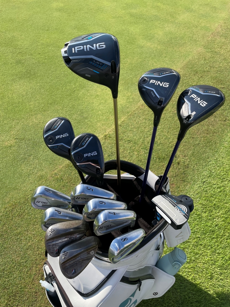 パターはオデッセイと、キャディバッグには4メーカーのクラブが混在しています。