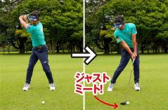 このメソッドのメリットはショットの直前に「飛ばせるハンドファーストインパクト」を体現し、ナイスショットのイメージを高めるという点です。インパクトでボールにきちんと当てようなんて考えないこと。「このカタチに戻ればOK!」と自分に言い聞かせてボールをしっかりヒットし、クラブを気持ちよく振り抜きましょう。