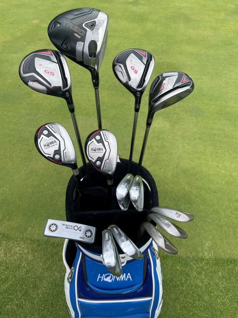 ちなみに「晴れ用」と「雨用」の違いは、ヘッドは同じホンマの「T//WORLD GS」 ですが、「晴れ用」はフェース中央に溝がなく「雨用」にはあります。