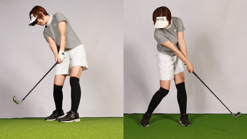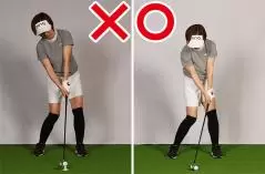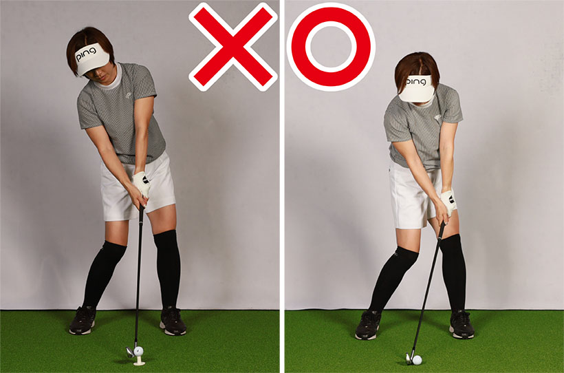 この場合、アイアンのアッパーブローとは、すくい打ちのこと。ティアップとはボールが地面より浮いたところにあるということですから、ヘッドが下からボールに向かうスペースができます。こうしてすくい打ちになるとロフトが増えて番手本来の飛距離が出ません。