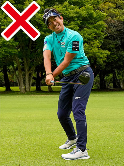 カラダの回転を止めて腕だけを返したり、インパクトエリアで手首をこねたりするのはNGです。ロフト角が多めの5番ウッドや7番ウッドでアームローテーションを入れすぎるとフェースがかぶって当たり、左に引っかけたりフックがきつくなりすぎたりするからです。