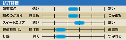 4モデルの中で、最も球のつかまりやすさと上がりやすさを持ったモデルです。余計なスピンはかかりにくく、シリーズ共通の初速性能でやさしく飛ばせます。球が上がりやすく適度にスピンがかかるので、ストレートからドローボールを打ちやすいモデルです。
