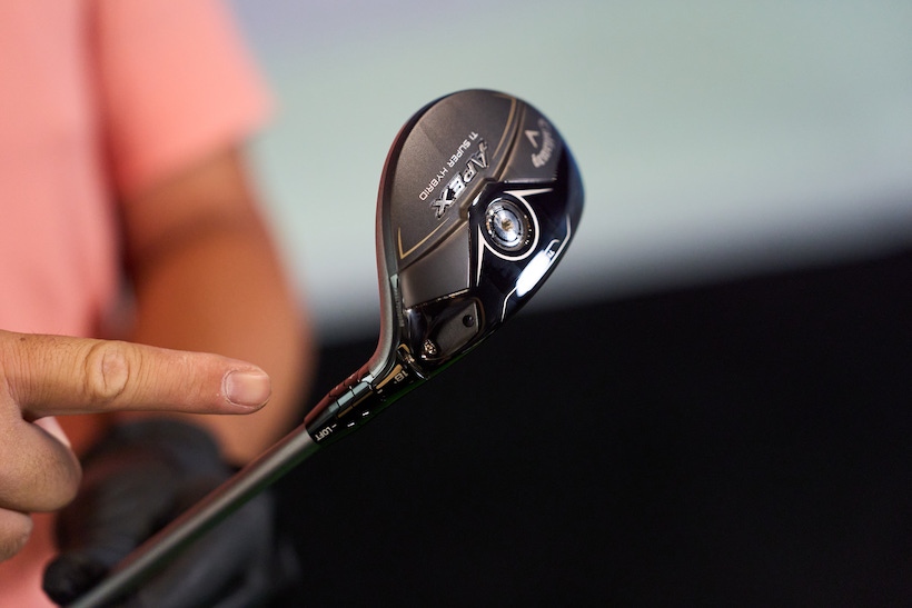 今回の「APEX UTシリーズ」は「APEX UW」、「APEX Ti SUPER HYBRID」、「APEX UTアイアン」の3モデルからなるが、とりわけ飛距離性能を重視して開発されたのが「APEX Ti SUPER HYBRID」。フェースはチタン、ボディはステンレススチール。「PARADYM SUPER HYBRID」でソールとヘッド内部に搭載されていたウェイトをなくし、ソールのスクリューウェイトのみとして重心位置を高め、スピン性能とコントロール性能を向上をさせた。クラブを長くしたのも飛距離アップ対策の一つ。「ELYTEユーティリティ」と比べると、それぞれの番手で0.25インチ長くなっている。