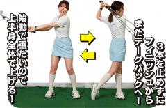 上半身の回転を使えた大きなアークのダウンスイングに!