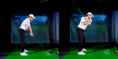 「腕が緩んでオーバースイングになるのを嫌がってスイングを改造。グリップを強く握って腕を張って、とくに左腕をガチガチに固めてクラブを上げていくから苦しくなって、トップが思ってもないくらい低いところに。その低すぎるトップから状態で打ちにいくからタイミングが合わない、ミスが出る。とくにベテランゴルファーに多い動きですね」(内海プロ)