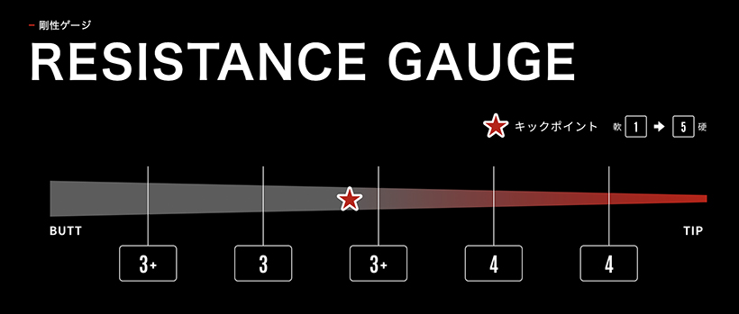 剛性分布は手元がややしっかり、中間に少し柔軟性があり、先端は高剛性という構成で、カタログでは中調子ということになっていますね。