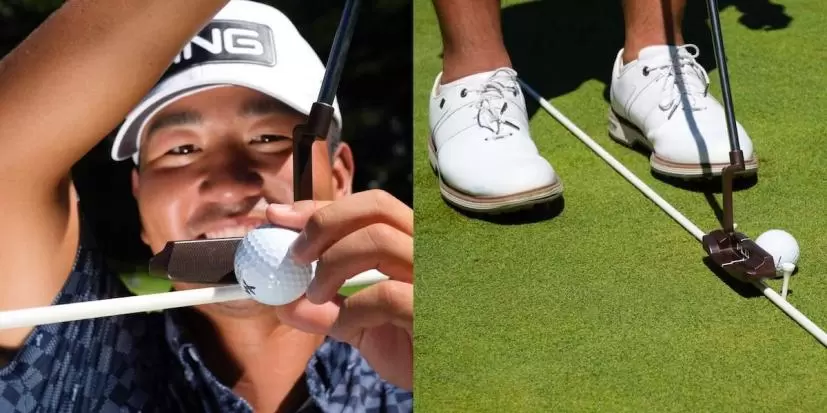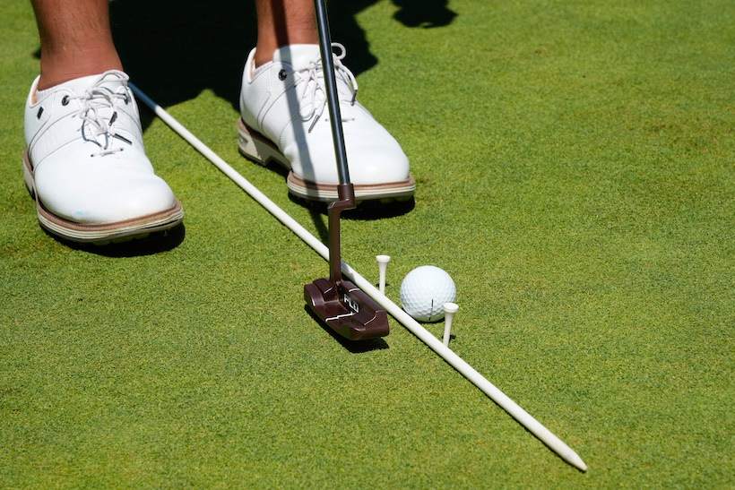 アライメントスティック(以下スティック)を使ってパットの練習をしているプロは多い。ターゲットラインに対して平行に置いて、肩や腰、スタンスの向き、またはストローク軌道を確認したり、両ワキに挟んで肩の動きを確認したりと使い方はさまざまだ。
