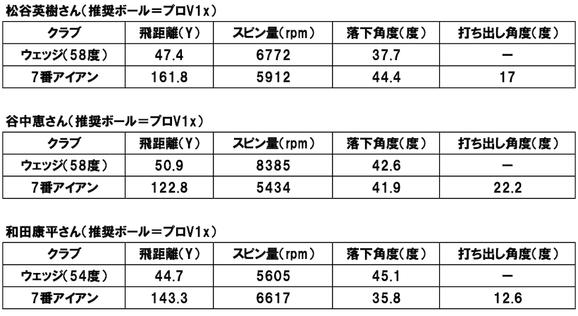 「やはりボールの違いを数字で確認できたのが大きくて、特にスピン量は自分で納得できた部分でした。アイアンでは高さが出る方なんですが、ずっと打ち方で上がるんだろうと思っていたんです。でも、今回ボールによって変わることがわかり、しかも飛距離とも比例していることがわかって納得できました。