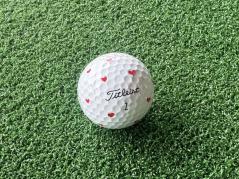 まずは初級編。どっからどうみても可愛いハートボールは、ゴルフボールのディンプル(凸凹したところ)の中に、小さなハートを書くだけ<。片方ずつ描くと綺麗に描けるのでおすすめ。