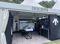 「デサント」ブースでもウェアやゴルフアイテムを販売。先端のテクノロジーを駆使し、ゴルフに特化した機能を曲線で表現した最上級モデル「g-arc」シリーズも購入可能。ちなみに、「g-arc」とは、スイングの軌道をモチーフにしたデサントゴルフの象徴「g」にスイングアークから「arc」を抜き取り組み合わせた造語だとか。