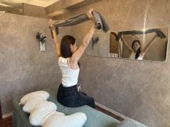 最後に足のむくみを軽減してもらい、全体を整えてもらう。「もう終わってしまうのか〜」と1時間はあっという間。起き上がると、かなり体が軽くなっており変化もこの通り。