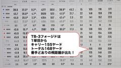 上の表は5番の弾道解析結果。マイクラブ(上)はミスの度合いがさらに大きい。『TB-5フォージド』(中)は曲がりが小さくなったがキャリーが出ない。『TB-3フォージド』(下)は1球目で番手通りの距離が出た。