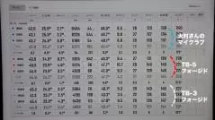 上の表は5番の弾道解析結果。マイクラブ(上)はミスの度合いがさらに大きい。『TB-5フォージド』(中)は曲がりが小さくなったがキャリーが出ない。『TB-3フォージド』(下)は1球目で番手通りの距離が出た。
