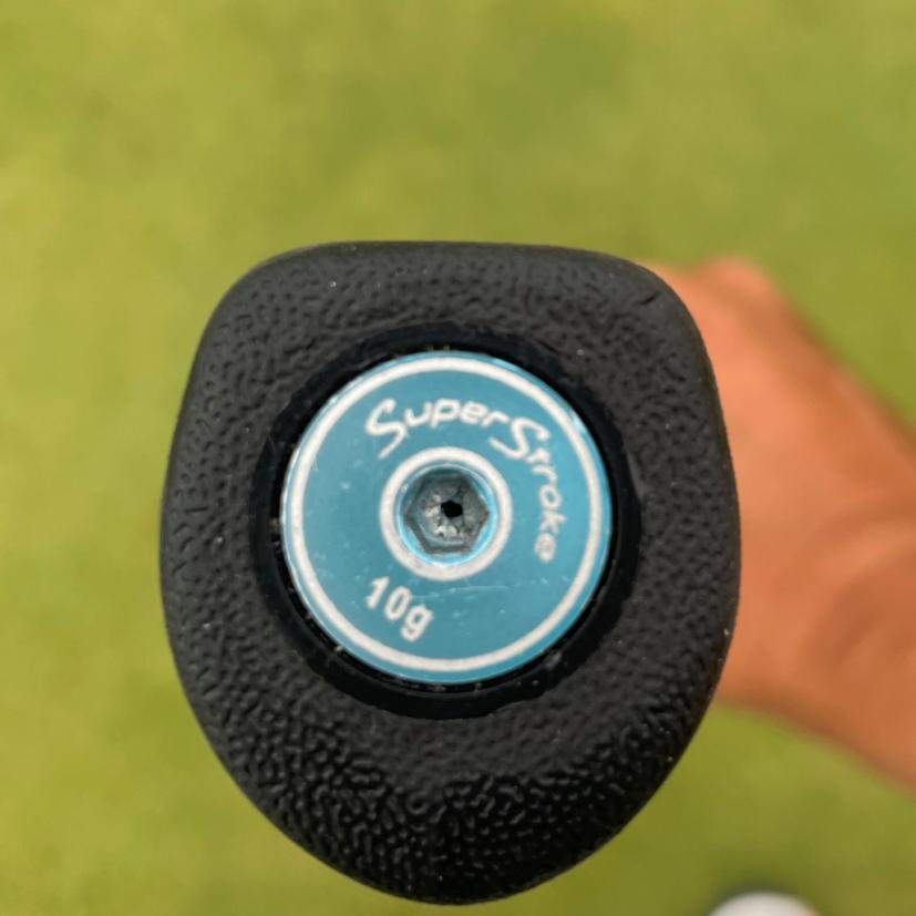 パターのグリップエンドには10グラムの錘が