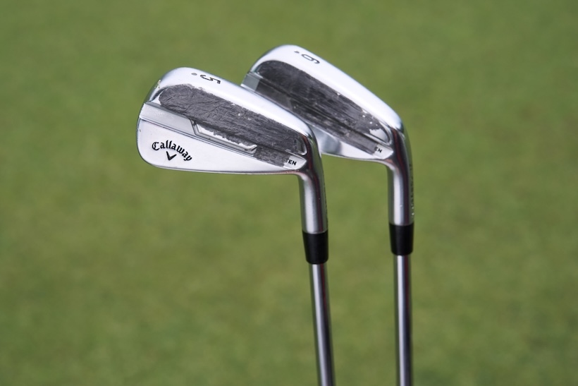 そのウッド型UTとアイアンは旧モデルが並ぶ。3U(19度)と4U(22度)は2016年モデルの「XR OS」。見た目の安心感があり、ミスヒットに寛容なラージサイズのヘッドだ。ちなみにこの4Uは、使い込んでミゾがなくなったため、キャロウェイのスタッフがメルカリで調達してくれたモノだとか。そして5I・6Iは「APEX PRO」、7I~PWは「APEX TCB」という、2021年モデルをコンボセットにしている。