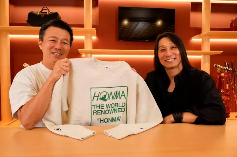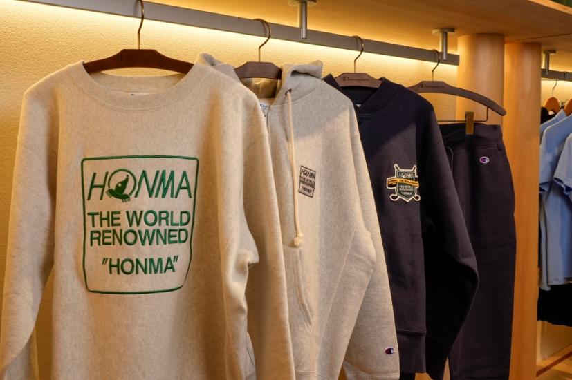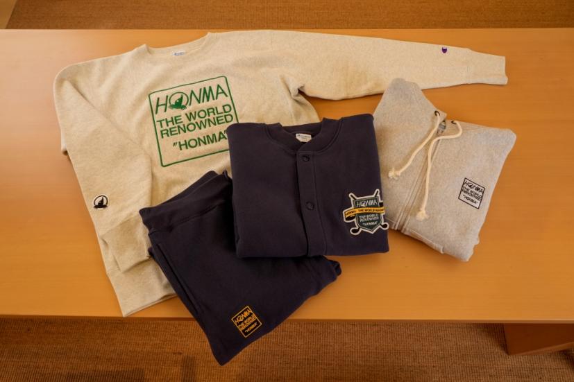 ――ノリオ社長! な、なんですか? このウエア? 「Champion」のスウェットに「HONMA」のロゴがこんなに大きく入っている!!!